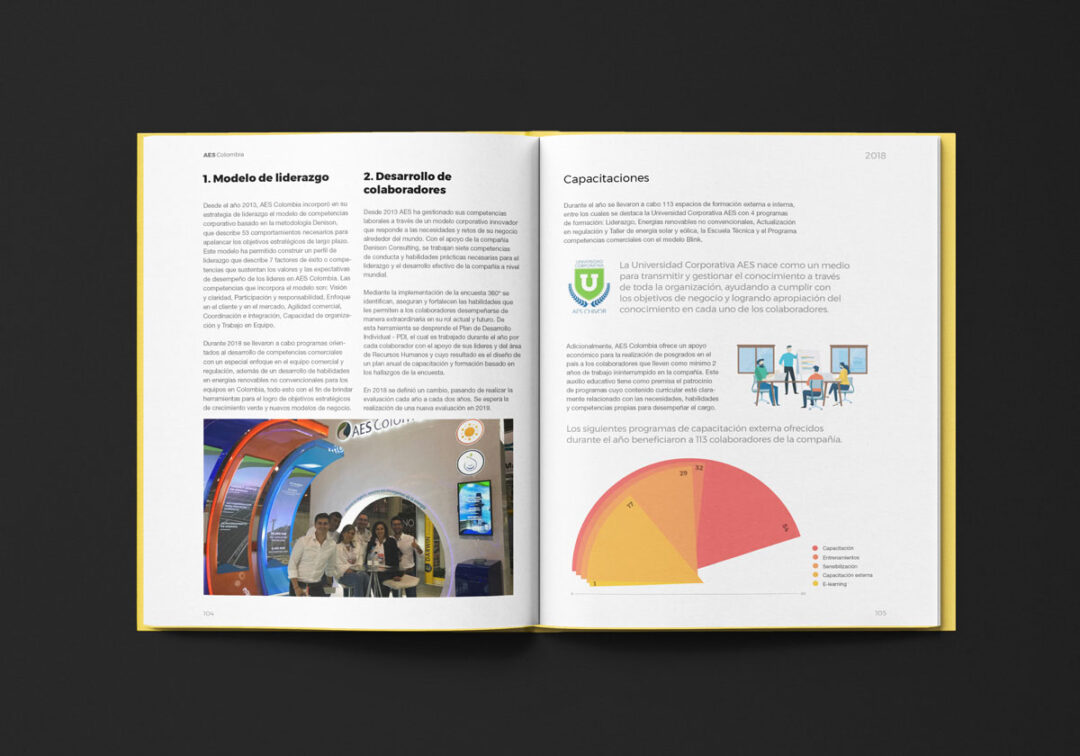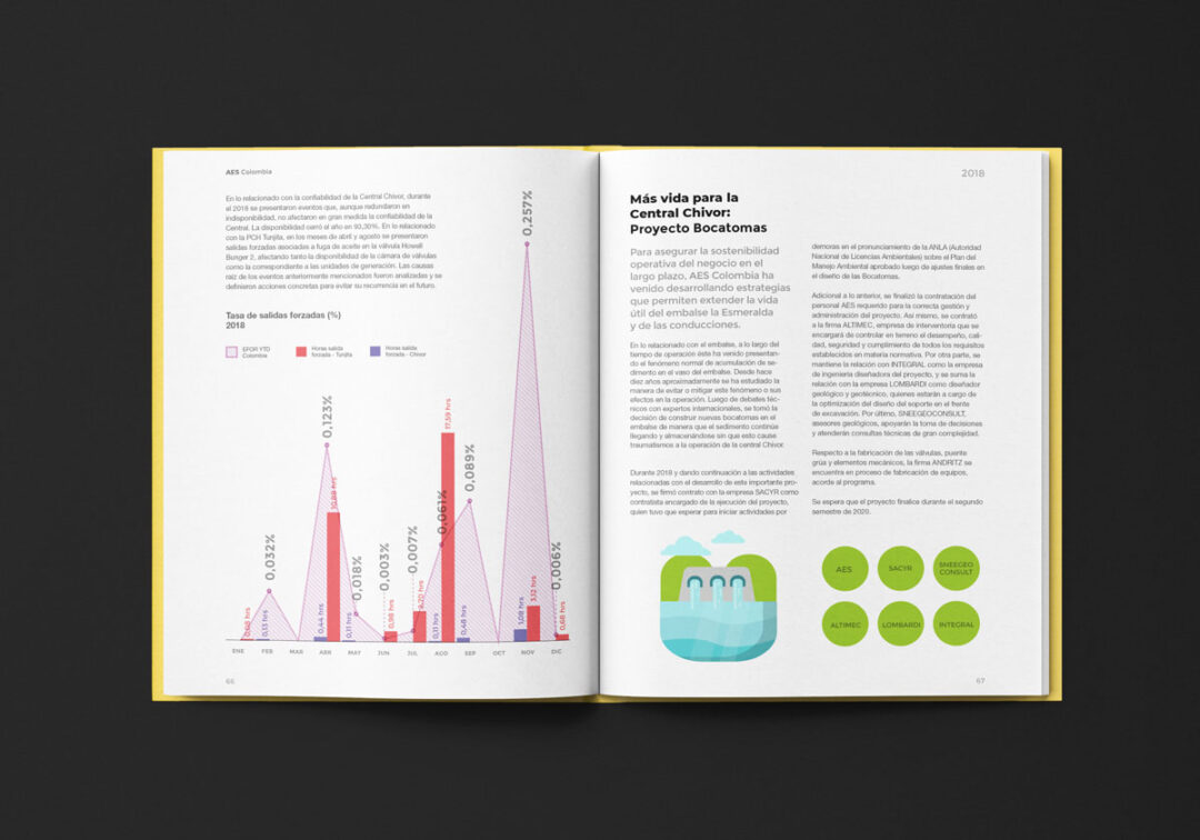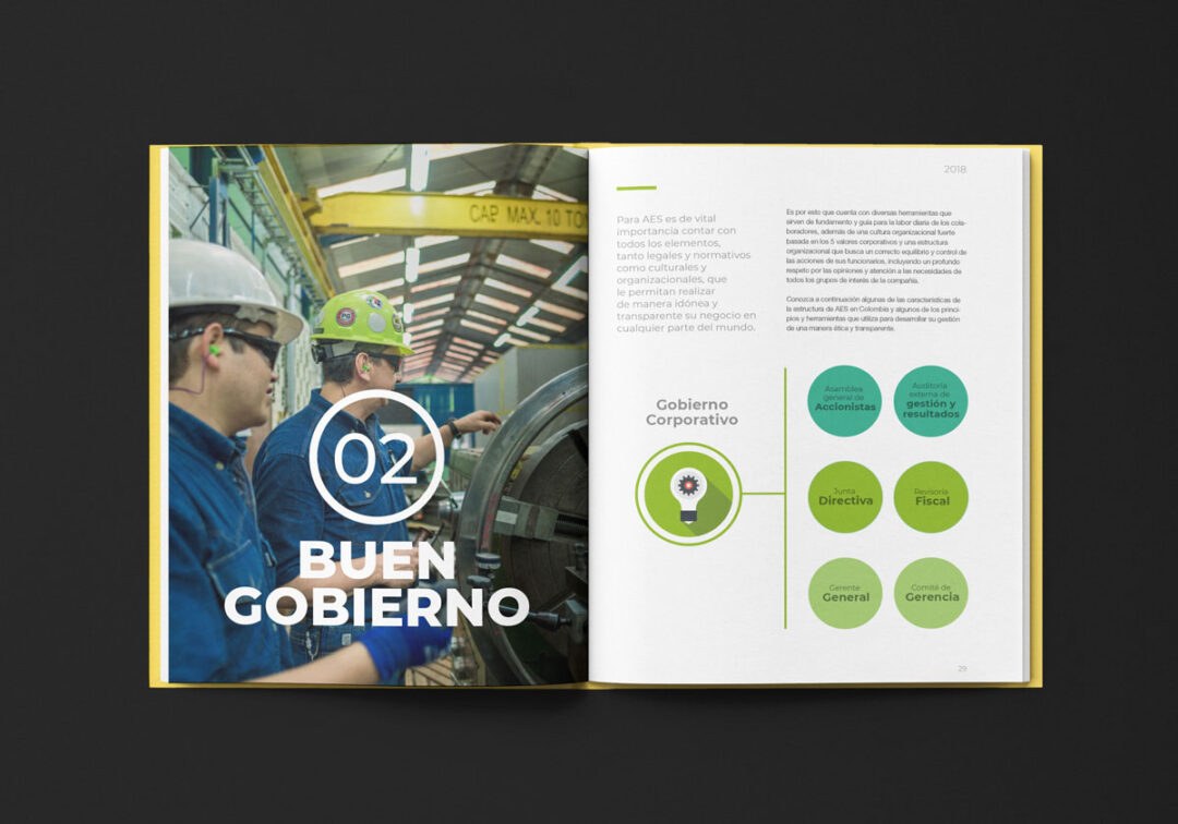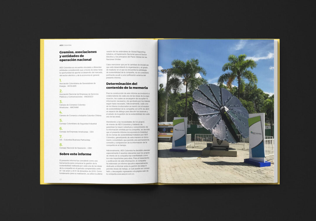 Desde 2018 hasta la actualidad, Puntoaparte ha estado a cargo del diseño y la diagramación del reporte de sostenibilidad de AES.