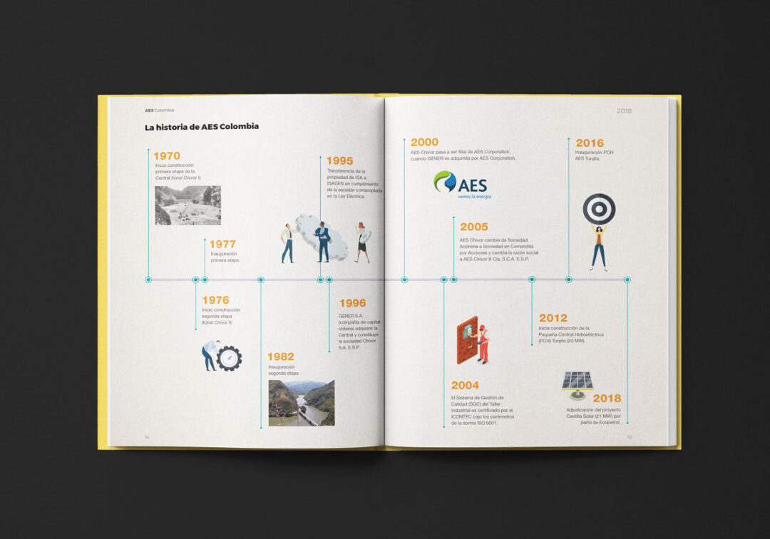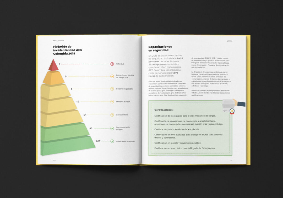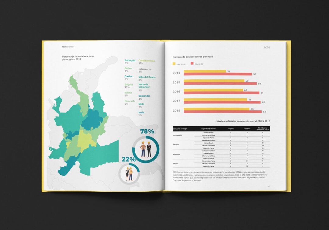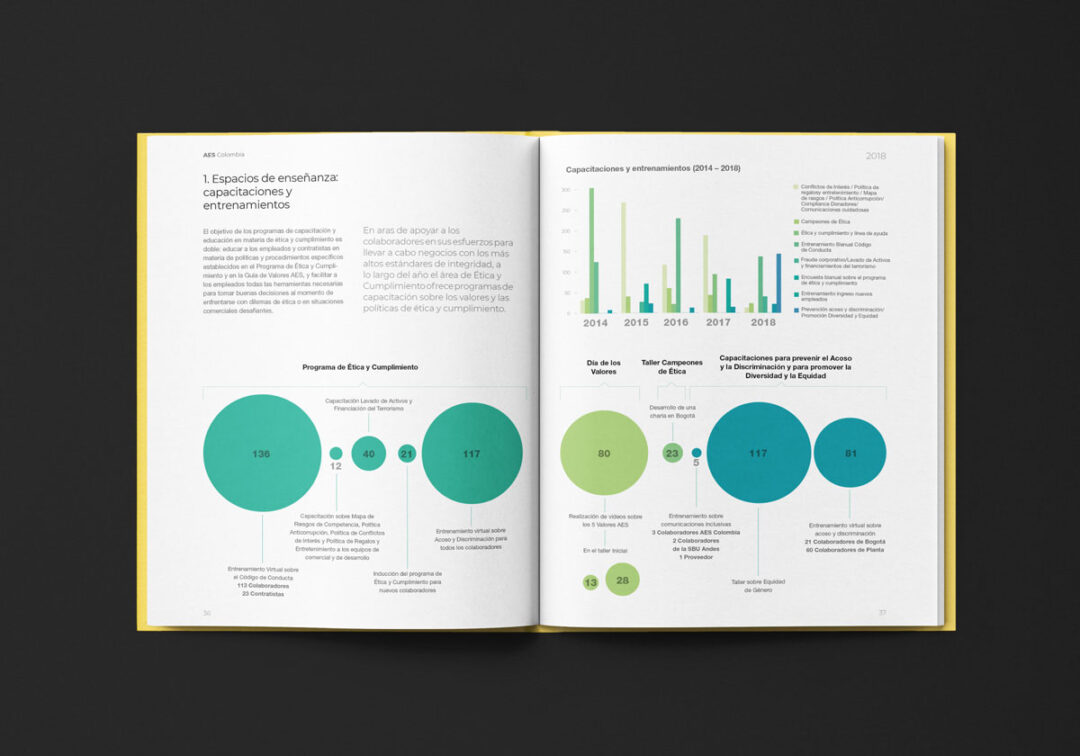 Desde 2018 hasta la actualidad, Puntoaparte ha estado a cargo del diseño y la diagramación del reporte de sostenibilidad de AES.
