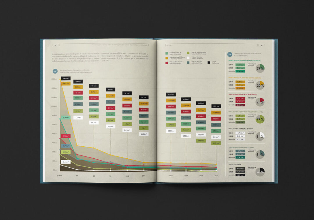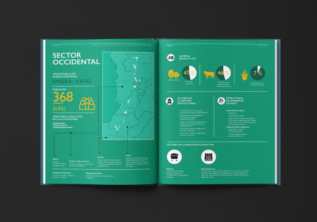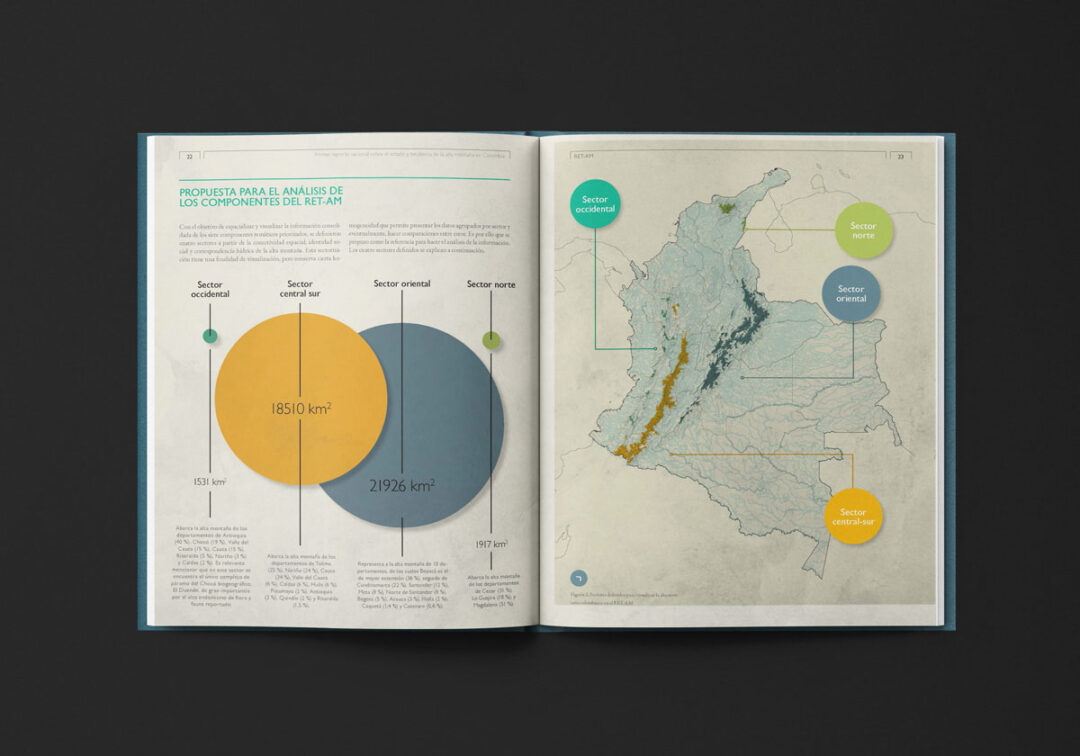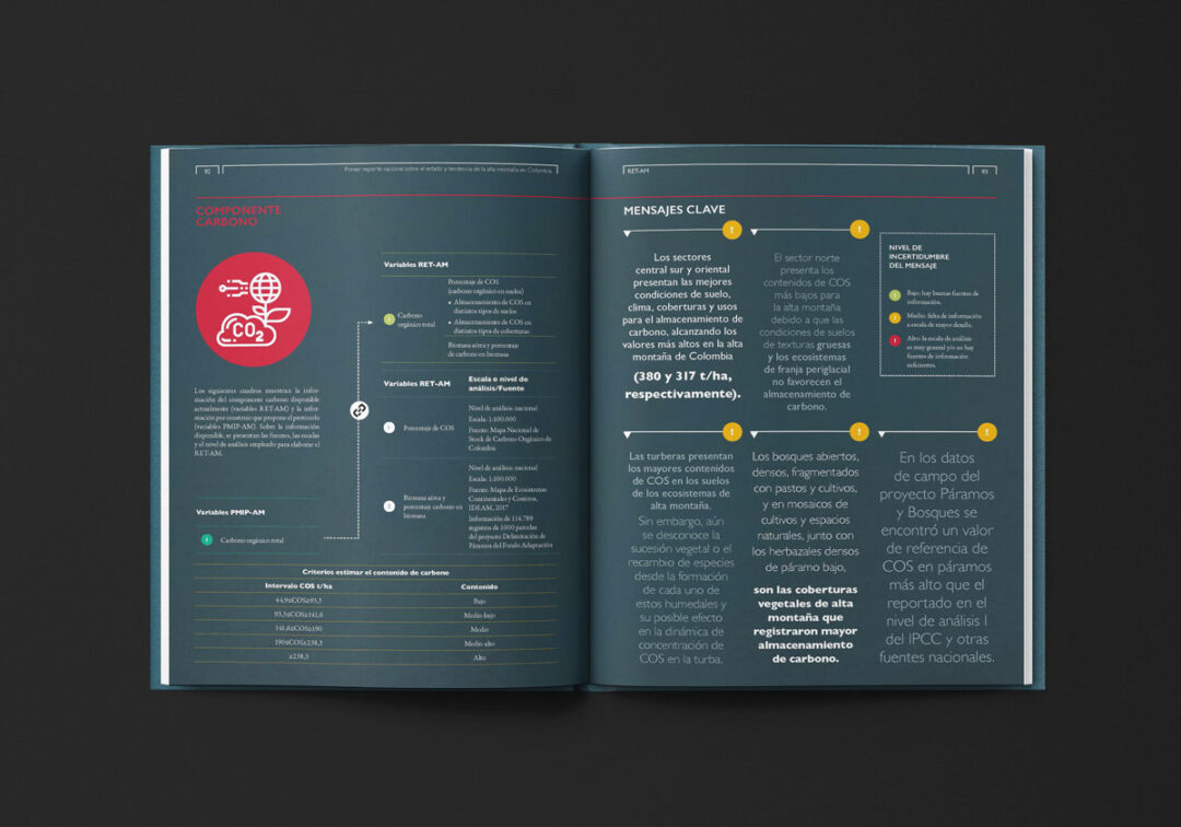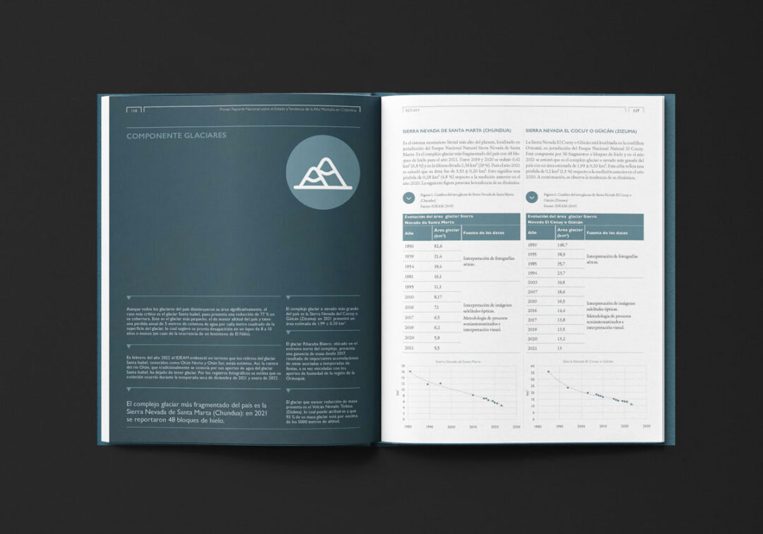 El Primer reporte nacional sobre el estado y tendencia de la alta montaña en Colombia (RET-AM), editado y diseñado por Puntoaparte para USAID, MinAmbiente e IDEAM, está conformado por dos secciones: i) el resumen para tomadores de decisión (sección A) con mensajes, hallazgos y datos clave y ii) la información técnica detallada y el análisis de datos que fundamentan los hallazgos del estado y tendencia de la alta montaña (sección B).