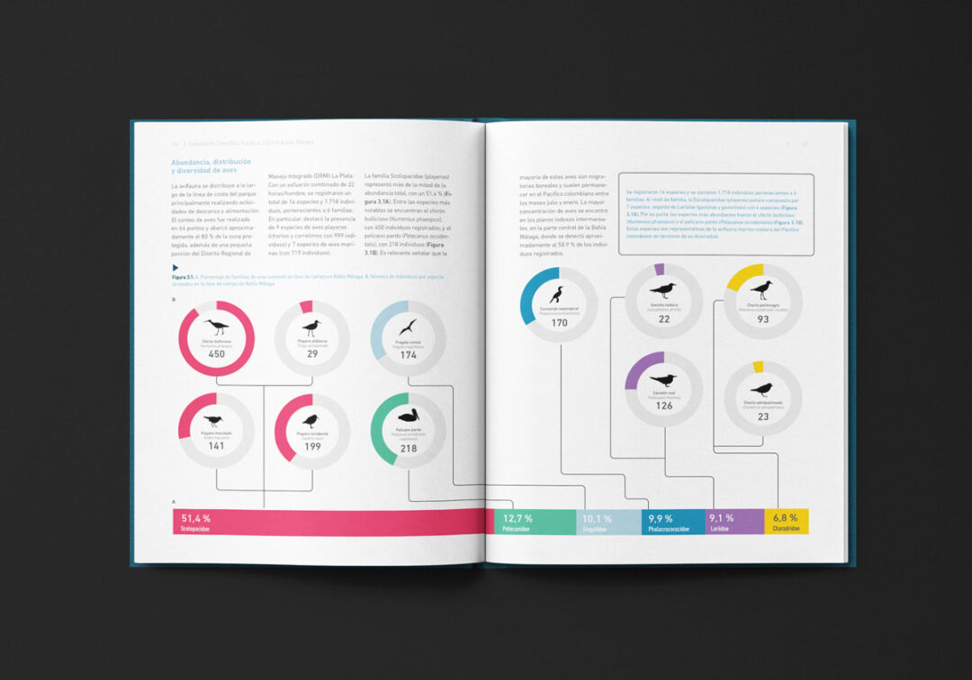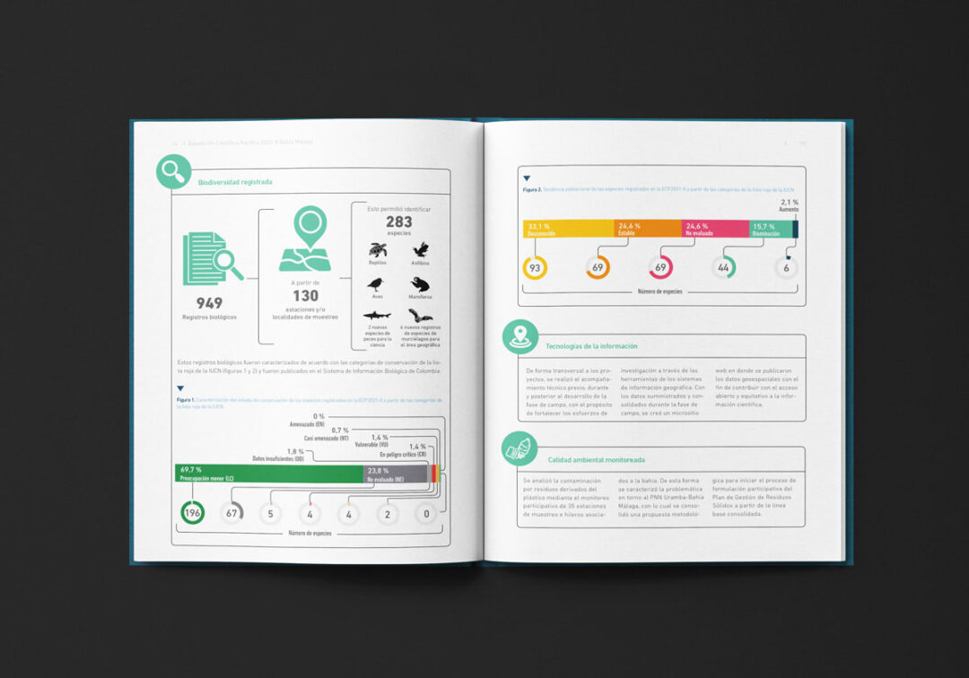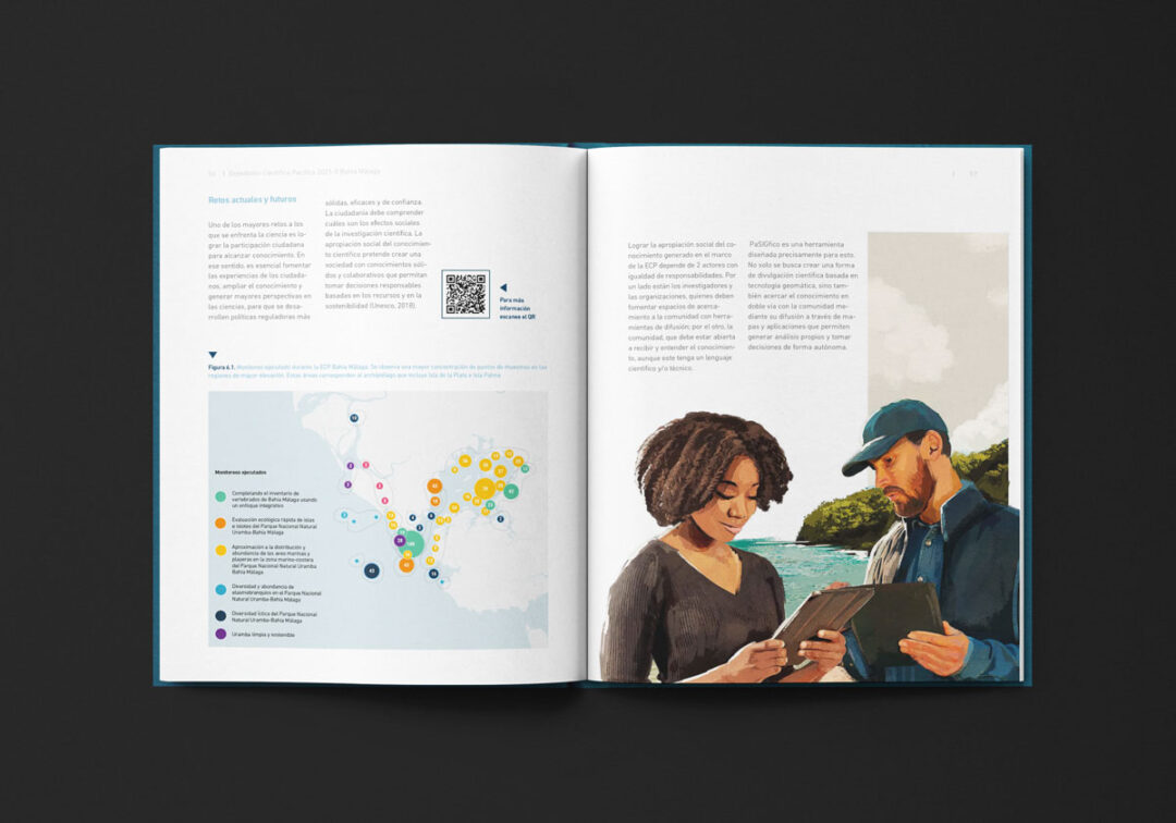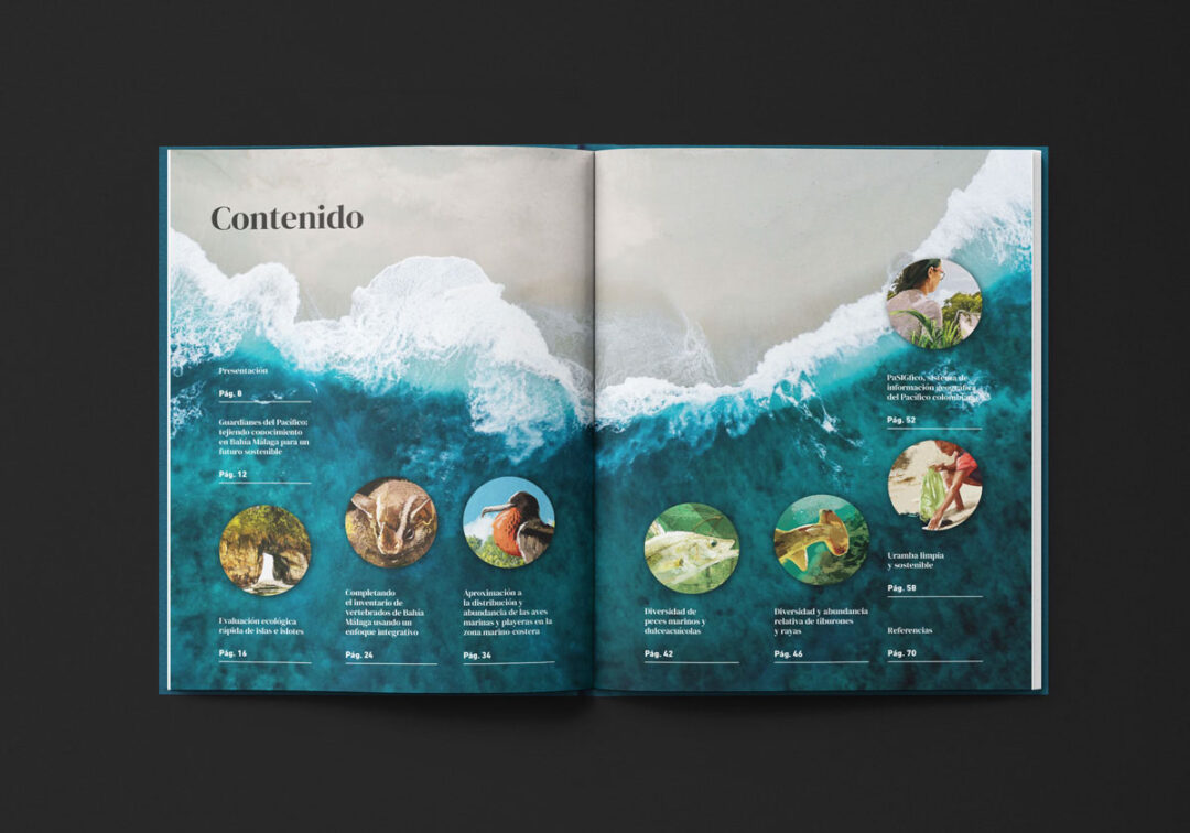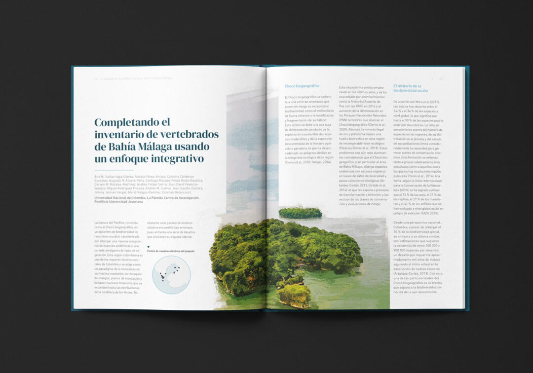 El Boletín Expedición Científica Pacífico 2021-II Bahía Málaga, diagramado e ilustrado por Puntoaparte para la Comisión Colombiana del Océano, presenta los resultados de esa iniciativa en el marco del Plan Nacional de Expediciones Científicas Marinas (PNEC). Esta estrategia fue diseñada para fortalecer la integridad y proyección territorial, el desarrollo económico, la gobernanza y el uso sostenible de los recursos, a través de la generación de conocimiento integral del territorio marino-costero de Colombia.