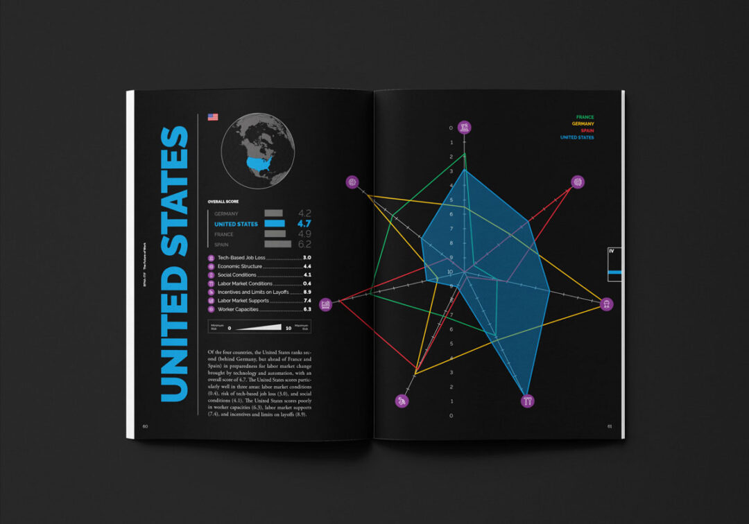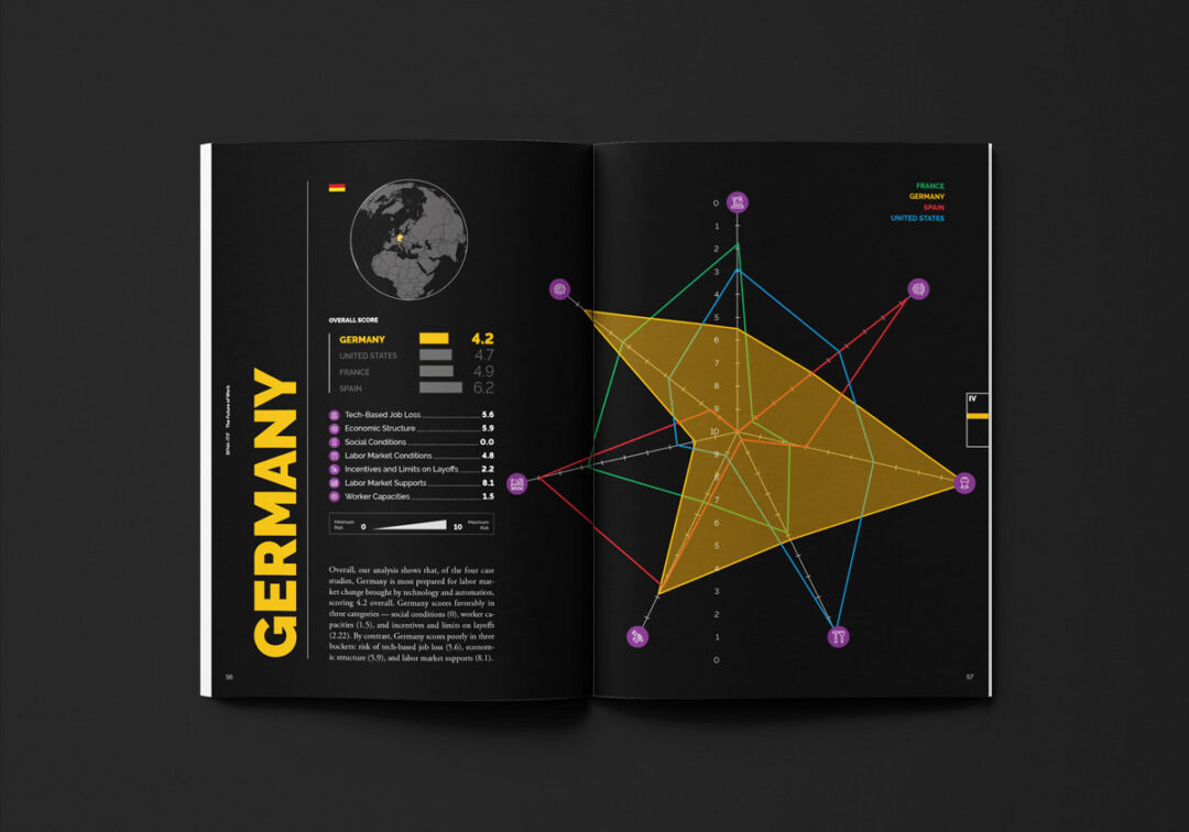 El libro THE FUTURE OF WORK: AGUIDE FOR TRANSATLANTIC POLICYMAKERS, comisionado por Bertelsmann Foundation, es una guía para tomadores de decisiones que compara cómo Francia, Alemania, España y Estados Unidos enfrentan el futuro del trabajo… y concluye que Alemania lidera la preparación, seguida de EE.UU., Francia y España.